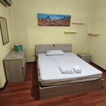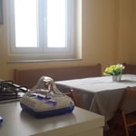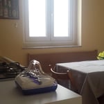 Next to the wide entrance, on the right there is a nice and comfortable kitchen with a table for 6 people, a renovated bathroom and two bed-rooms with double beds, one with window, one with balcony.