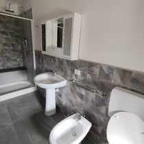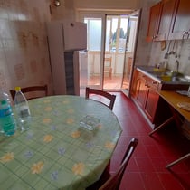 The apartment is at the first floor. At the entrance 4 rooms, a big kitchen with terrace, huge living-room, two renovated bathrooms.